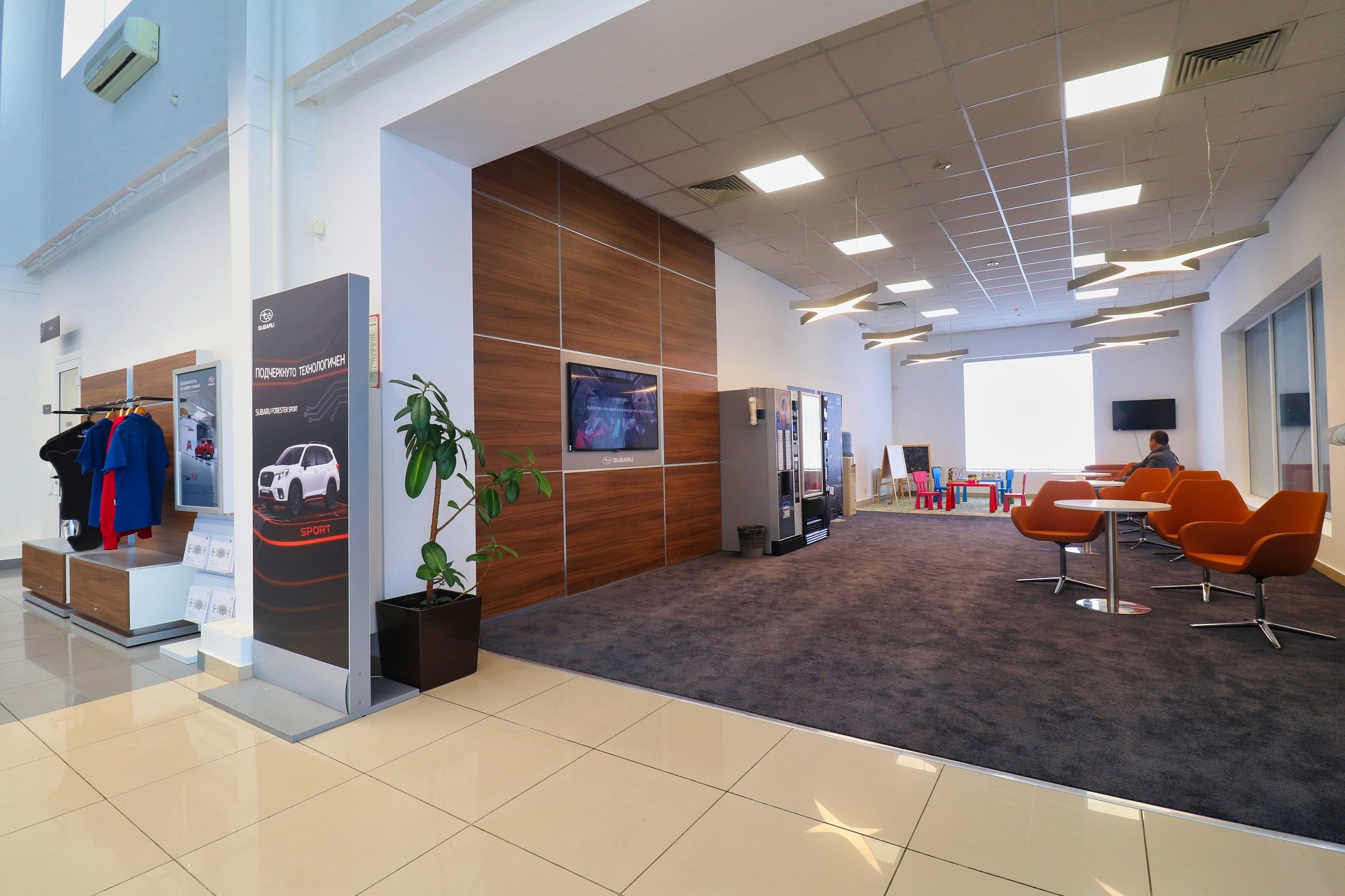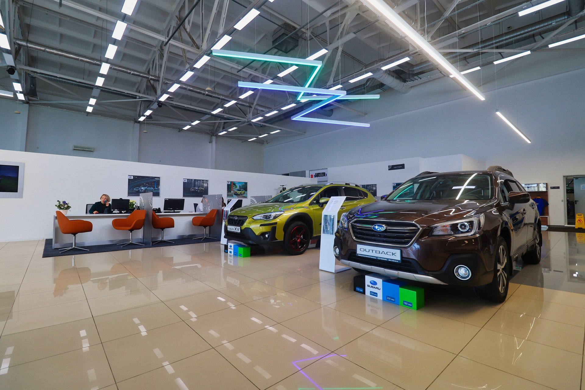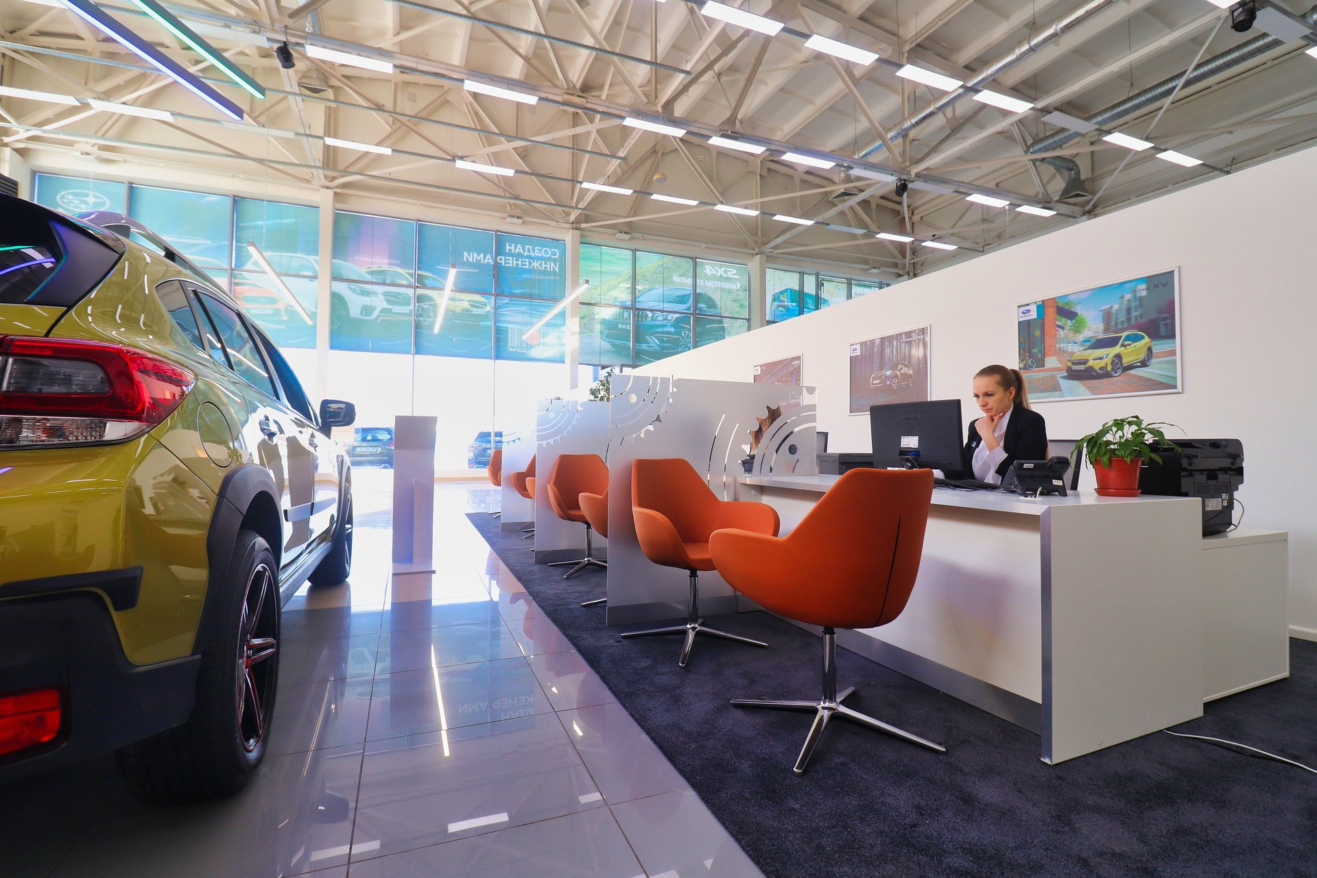 В обновленном комфортном помещении общей площадью более 500 кв.м. осуществляется полный спектр услуг по подбору, приобретению, а также гарантийному и послепродажному обслуживанию автомобилей Subaru. Кроме того, сотрудники дилерского предприятия готовы предложить услуги по кредитованию и страхованию, подбору оригинальных запасных частей и аксессуаров, а также продаже сертифицированных автомобилей с пробегом Subaru Select.
